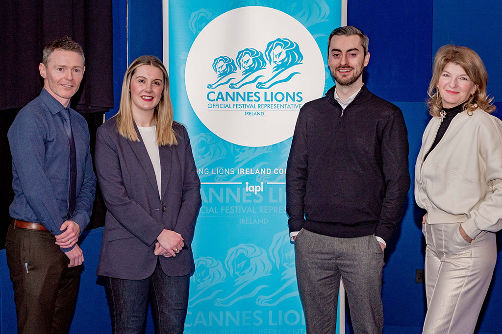 Jimi McGrath, CEO, Droga5 Dublin ; Orla Kinsella, Awards Senior Product and Research Manager, LIONS Advisory; Conor Stewart, Senior Development Advisor for the Commercial Creative Sector, Enterprise Ireland and Charley Stoney, CEO, IAPI. (Photo: Aidan Oilver Photography)