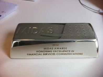Founded in 2001, the Midas Awards panel of judges includes client and agency leaders from the creative and marketing disciplines, as well as internationally recognized experts in financial policy and communications. These judges offer their perspectives not only on how well a message is delivered, but how it is received. Gold and Silver Midas ingots are presented to the highest-scoring entries in each category.