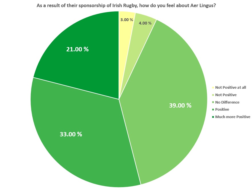 “Already the positive effects of the partnership and activations are taking root. 54% of fans say they feel more positively towards the brand as a result of the sponsorship – which is higher than any other sponsor of the Irish rugby team. Only 7% of people state that they feel more negative towards the brand,” notes the report.