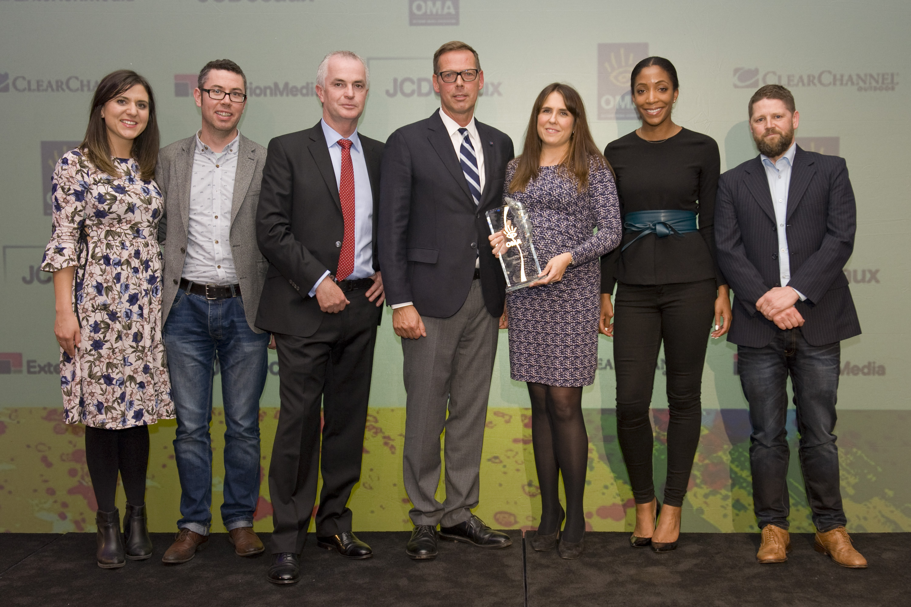 The creative and media industry was out in force on the night for the bi-annual awards that celebrate excellence in planning and creativity over the past two years. The awards are organised by the Outdoor Media Association whose members are Clear Channel Ireland, Exterion Media Ireland and JCDecaux Ireland.