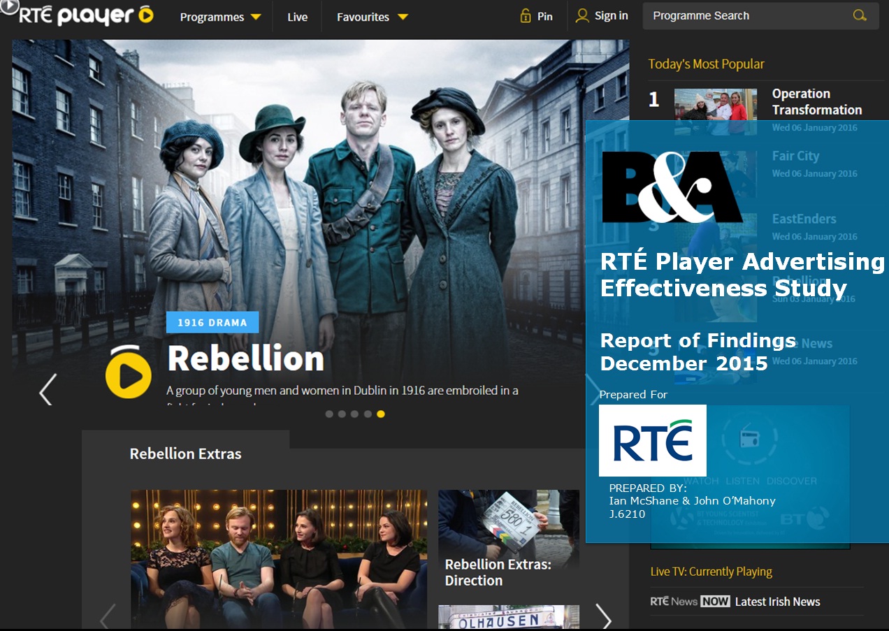 Separately, B&A conducted research to measure the effectiveness of advertising on RTÉ Player – measuring the advertiser’s brand equity, as opposed to mere awareness levels alone.