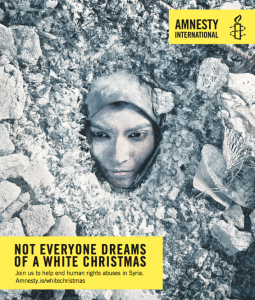 According to Colm O’Gorman, executive director of Amnesty International Ireland : “Since the beginning of the conflict almost six years ago, Amnesty International has been documenting serious human rights abuses in Syria. War crimes are becoming routine, with even hospitals and UN aid convoys now treated as targets. Our evidence shows that all parties to the conflict have committed serious human rights violations. This Christmas, we’re calling on people in Ireland to join us. We must stand up for the protection of civilians, respect for international law and bring perpetrators to justice. We must not accept the wilful destruction of lives, communities and a country. With your support, we can expose these horrific human rights abuses and hold governments to account.”