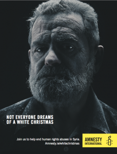 With a tag line of “Not everyone dreams of a White Christmas” and a call to action from Amnesty International for the Irish public to join them to end human rights abuses in Syria (www.amnesty.ie/whitechristmas), the campaign will run through Christmas week, into the New Year and comprises executions for press, digital and print media. All media has been negotiated for free by Mindshare Ireland with support from the media owners concerned.
