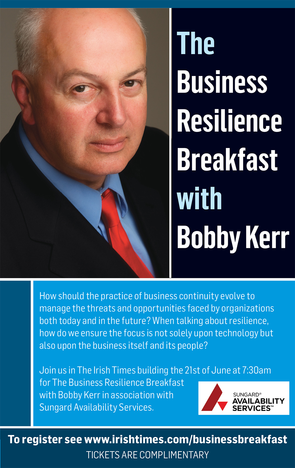 There are still a number of complimentary places available for The Irish Times’ Business Resilience Breakfast which will see investor, CEO and Newstalk broadcaster Bobby Kerr join a panel of business experts to discuss a range of topics next Wednesday, June 21st in the offices of the newspaper on Tara Street.