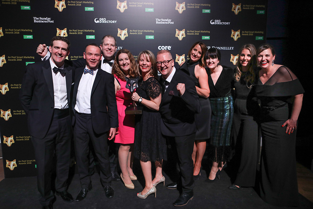 Other winners on the night included Ignition – The ideas People, Goosebump, Javelin, Publicis Dublin, Persuasion Republic, Bord Gais Energy, Toyota Ireland, KBC and Laya Healthcare. A full list of winners is HERE www. anpostsmartmarketing.ie