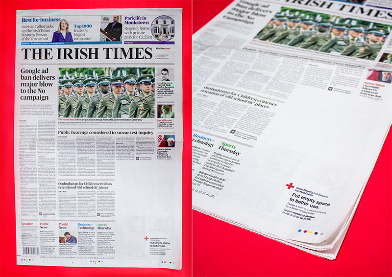 This campaign for the Red Cross purposely makes bad use of empty space within media placement (Press, OOH & Online) to highlight space in our homes or properties we could be putting to better use.