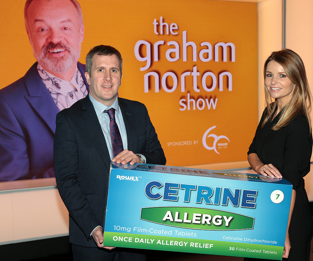 Commenting on the sponsorship, Joe Keane, Head of Operations at Rowa said: ‘’We’re delighted to be associated with The Graham Norton Show. It’s easy to see why this sponsorship is such a perfect fit for us, because like Graham himself, we’re proud of our Cork roots and this year we are delighted to be celebrating 60 years manufacturing in Bantry. With hay fever season just around the corner, we are launching the sponsorship with the Cetrine Allergy brand and the stings are the perfect vehicle to drive awareness.’’