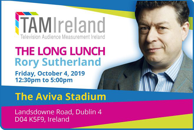 TAM Ireland will host Rory Sutherland as its keynote speaker at its Long Lunch event on October 5th in the Aviva Stadium.