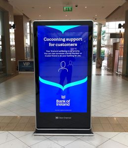Retail in particular is a powerful environment at present. Anyone who has been to a supermarket in recent times can testify to the high footfall and long queues. However, it can also be a distressing experience for many because of social distancing and sanitisation practices. Dwell times at stores offer brands the chance to reassure but also add some levity and a light touch. An opportunity to make us smile. Recent campaigns for Paddy Power using Peter Crouch to depict social distancing and Bank of Ireland advertising services to aid cocooning vulnerable people, exhibit how brands can use different tones to get important messages across.