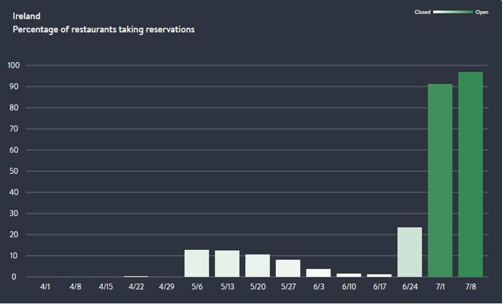 Among OpenTable’s Irish restaurants in their dataset, close to 98% are now accepting reservations.