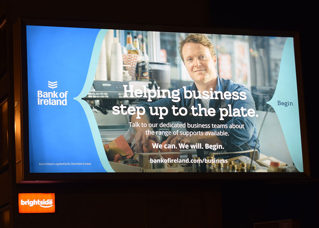 In many senses this week is about getting back to business for OOH and for OOH advertisers. For some brands, the message conveyed through their OOH campaigns is about reconnecting, reopening and revival. Guinness are speaking directly to their customers with a simple but effective ‘ready when you are’ message while McDonald’s play on fun behavioural connections to the eat-in experience to signal the beginning of their full restaurant reopening (more on that below). Centra carry a ‘welcome back’ message across their national 6 sheet campaign.