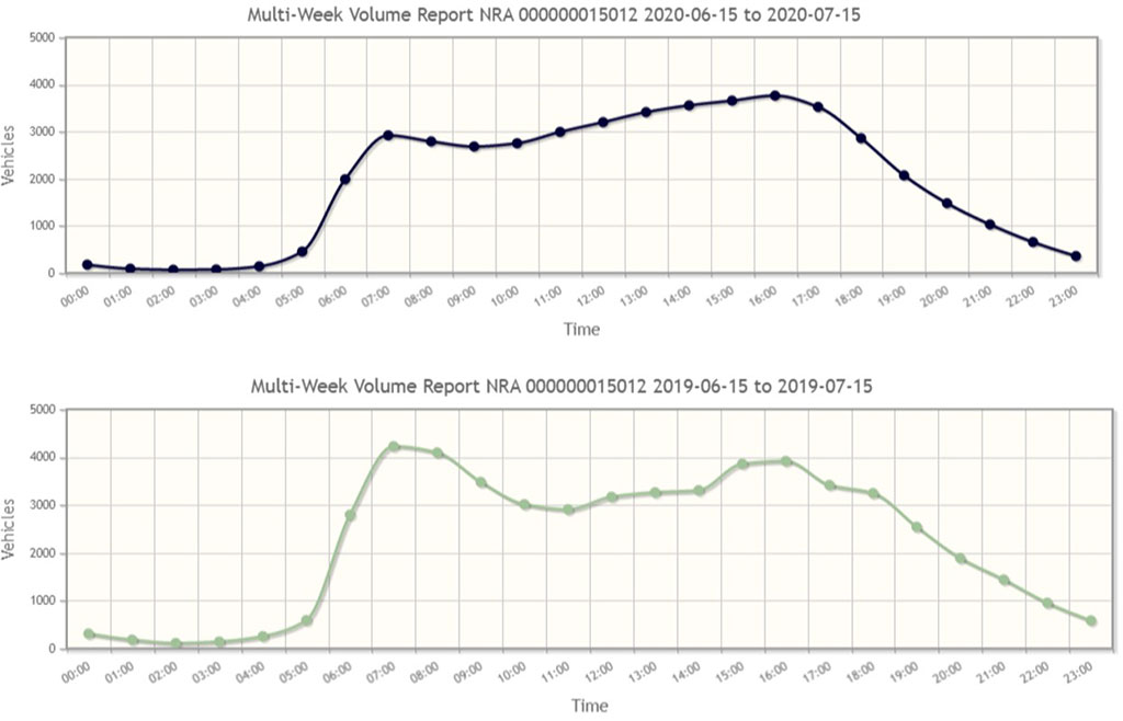 The graphic below is one example of a data point from the M50 between Cherrywood and Shankill. 2019 saw a much steeper fall off in traffic post-8am whereas in the past month that curve has been flatter, suggesting a steadier flow of traffic throughout the morning. This appears to be a trend across many other data points also. Whether this a permanent or temporary change remains to be seen as office workers return to the city in greater numbers but for roadside OOH advertisers it means a consistent audience throughout the day and potential exciting applications for dynamic daypart activations.