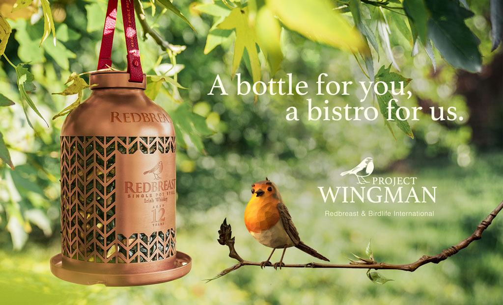 Dublin creative agency The Public House have helped Redbreast launch its first initiative under its new Project Wingman partnership with BirdLife International. A social and digital campaign was built around a Limited Edition Redbreast bottle featuring a copper exterior casing that neatly transforms into a beautiful bird feeder. The unique design was created by London based packaging agency Nude can be purchased on the Redbreast website with €15 from every bottle sold donated to support Project Wingman’s mission to keep common birds common.