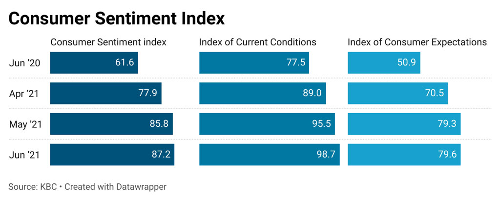 While the monthly reading of 87.2 for June is only marginally higher than the May figure of 85.8, the increase was enough to push confidence to a 24-month high.