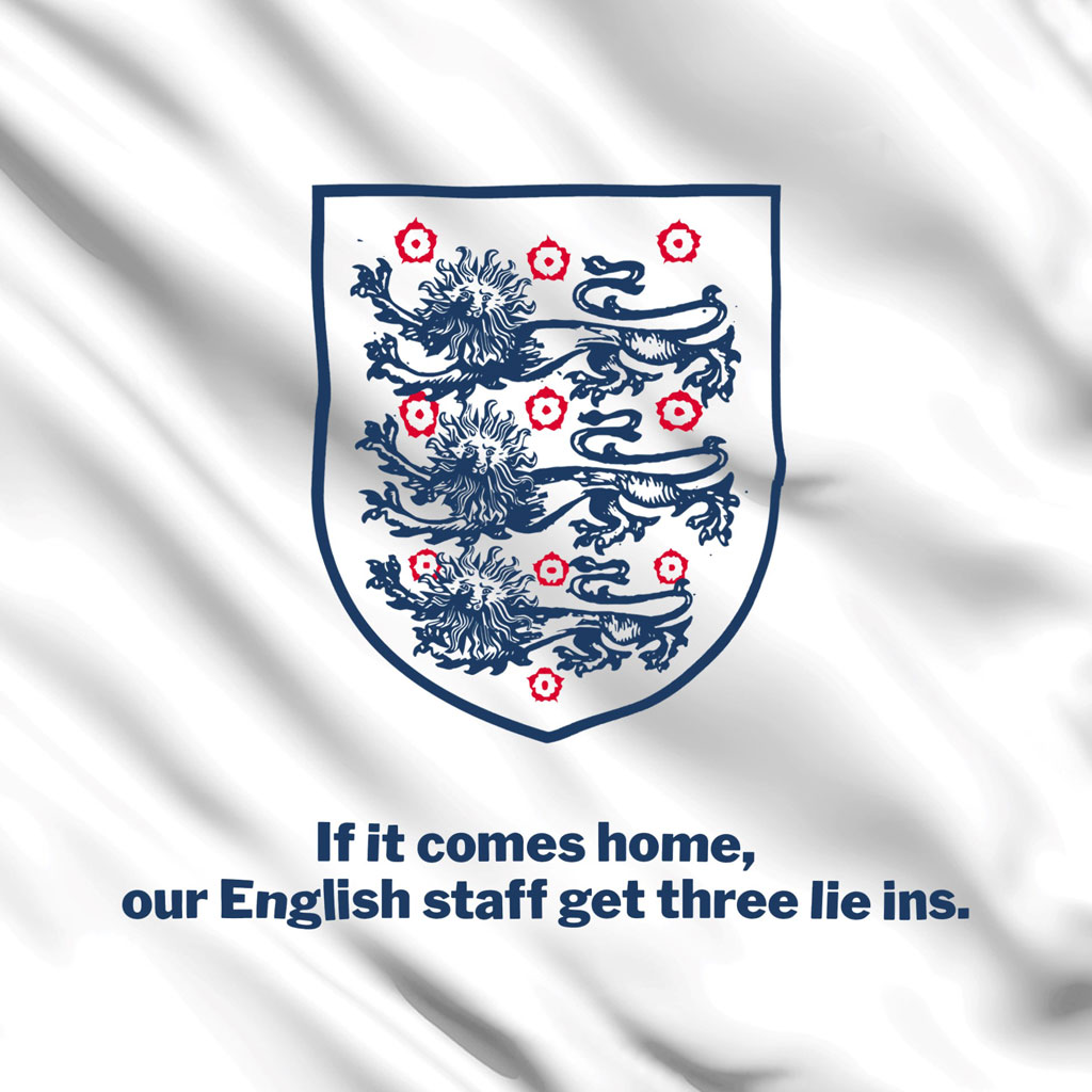 As a sign of solidarity with its English staff, those who have English partners or who can prove they have English grandparents, Publicis Dublin has even gone as far as redesigning the English crest by swapping the agency group’s own iconic lions with those used by England while an out-of-office email template has been created for anyone who is availing of the lie-in. Assuming they win, of course.