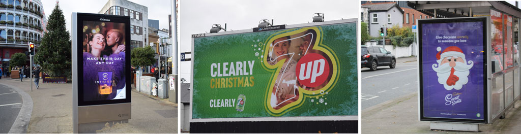 For many, memories of Christmas include traditional favourite foods and drinks. As 7UP pronounce on their cycle 25 billboards and bus shelters…it’s ‘Clearly Christmas’. No Irish Christmas cupboard is complete without a bottle or two. The same can be said of chocolate. Cadbury are back this year with their Secret Santa promotion, using instantly recognisable imagery and colours on 6 Sheets. Nestlé’s Quality Street Intrigue campaign is all about the love on 6 Sheets and retail digital.