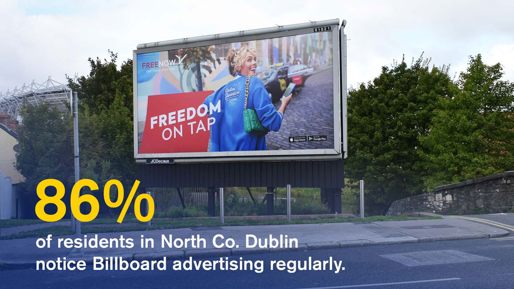 Despite the number of large billboards decreasing in recent years, their ability to attract attention remains stellar. In this study, almost 70% of respondents said they notice billboards regularly, peaking at 81% among 16-24s. Males had higher levels than females (72% v 63%), with a top score among 16-24s, at 82%. Unsurprisingly, therefore, single people were more likely to agree than married people and when it comes to area of residence, noticeability of billboards is highest among those in North Co. Dublin.