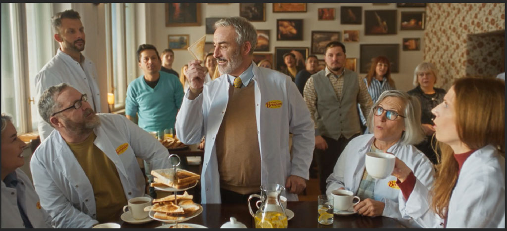 The TV spot is narrated by a friend of “Old Mister Brennan” and the viewer sees Old Mister Brennan briefly preparing in the mirror as he prepares his entrance to the annual soiree, where we are introduced to the various bakers at Brennans. Their commitment to and passion for their trade are the reasons why everything baked is ‘Better with Brennans’.