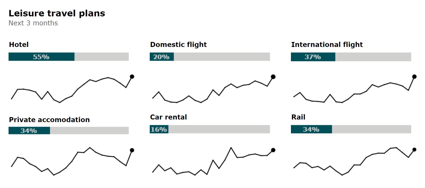 58% of us plan to spend on leisure travel in the next four weeks. Over half of us also plan to stay in a hotel in the next three months while 37% intend to fly internationally, peaking at 49% of 18-34s