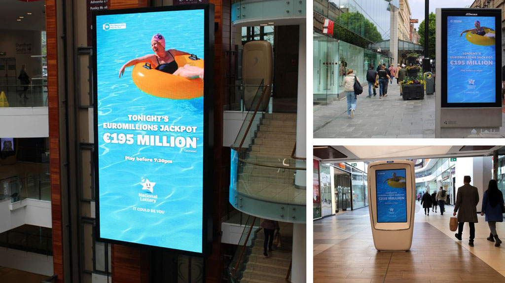 The National Lottery is using digital out of home (DOOH) formats to promote its EuroMillions Jackpot. The campaign aims to connect with consumers across the country, reminding them of the life changing Jackpots which ‘could be you’. The highly visible designs by Core Creative called out last Friday’s Jackpot of €195 million. After the draw took place, the message was adapted for Tuesday’s whopping €215 million Jackpot. This simple, yet effective use of Digital OOH allowed for greater flexibility with the creative copy. The campaign runs on formats including Tesco Live, Adshel Live and dPods nationwide.