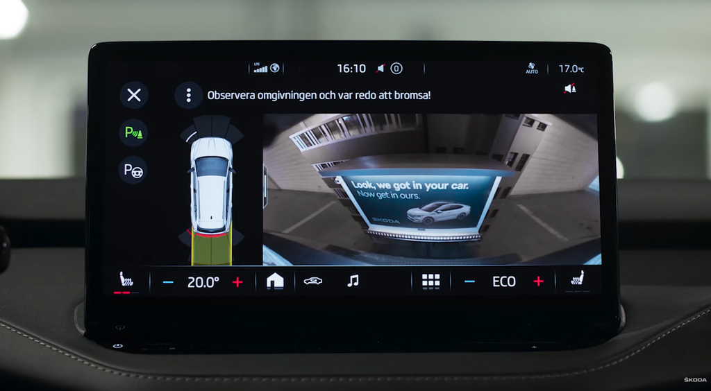 Some weeks ago, we discussed how McLaren were innovating on Out of Home into by featuring tiny DOOH screens positioned in front of F1 driver’s cockpit cameras. The automotive space continues to impress with OOH innovation as Skoda have begun to creatively advertise their new ENYAQ line, reaching drivers where their attention is at a high point: backing up into a parking space.