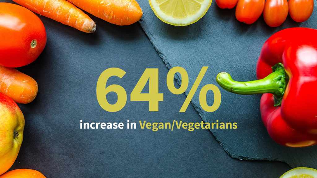 New iQ research from PML Group and Ipsos shows a significant year on year increase in the number of Dubliners who are vegan or vegetarian. At the beginning of 2022, the iQ study of 300 Dubliners revealed 11% to be vegan or vegetarian. In 2023 that figure has now risen to 18%, an increase of 64%. Meat eaters have decreased from 85% to 78% in the same period.