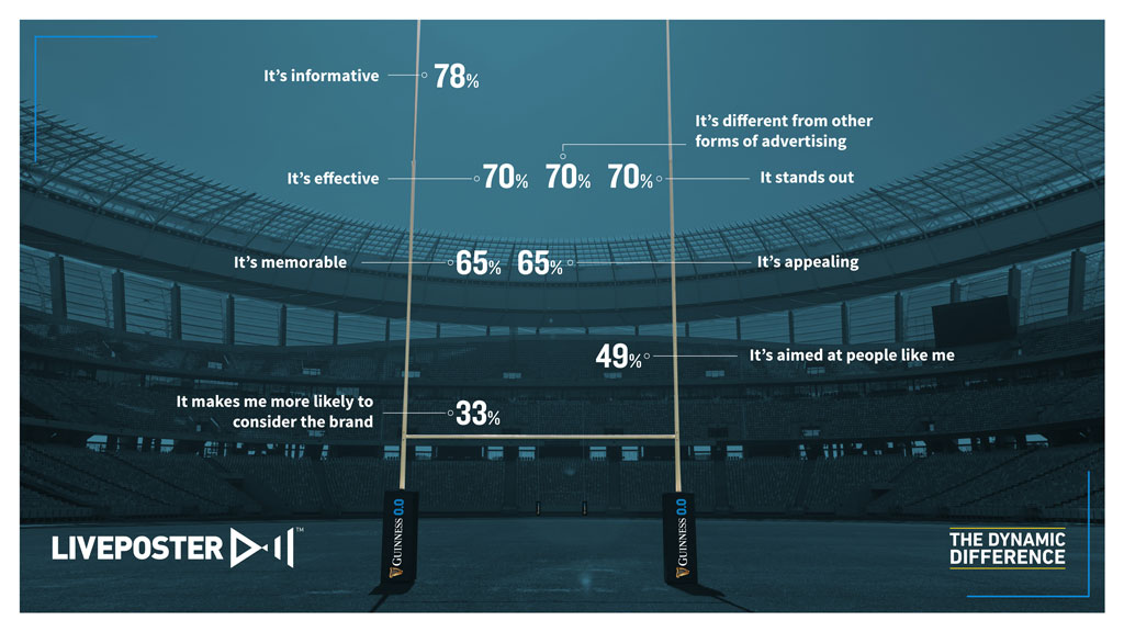 Sports events like the Six Nations continue to provide brands an opportunity to leverage the power of dynamic DOOH in a contextually relevant way. Our most recent OCS study noted 75% of rugby fans are interested in DOOH messaging that is relevant to live sporting events.