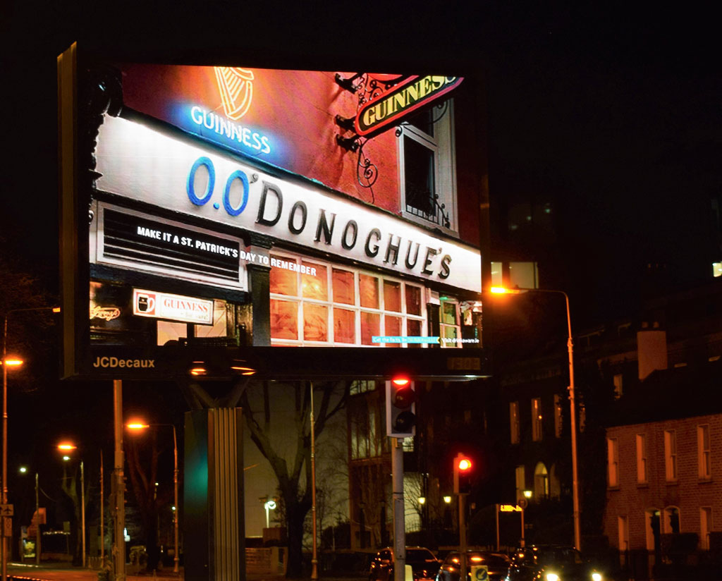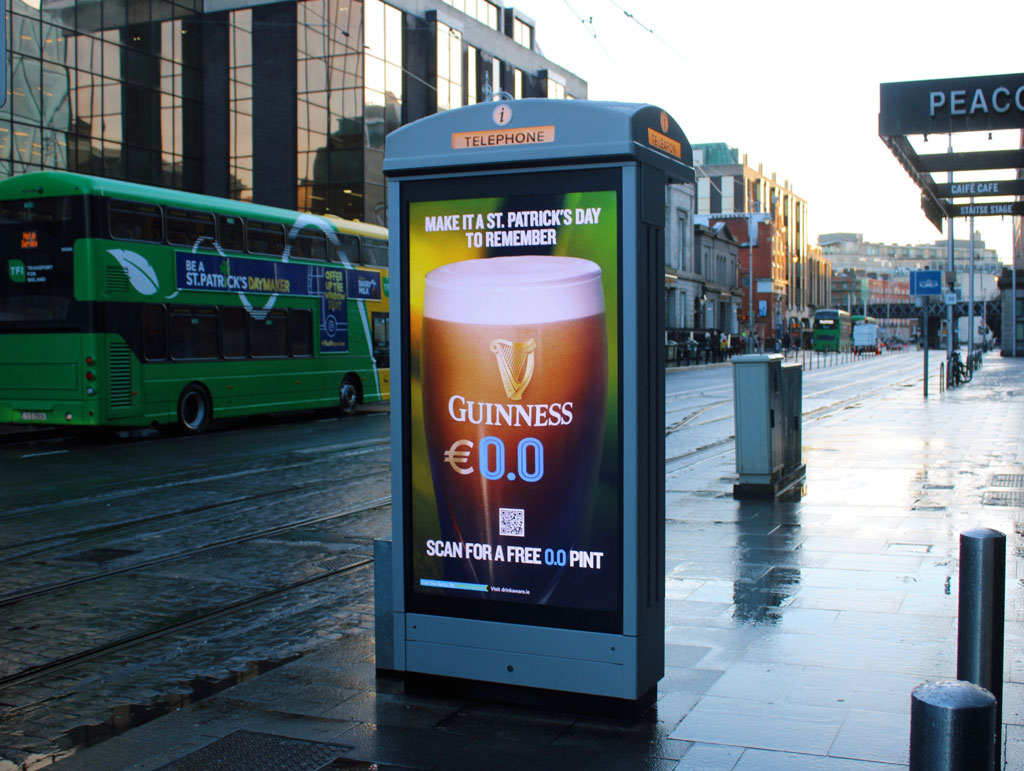 Planned by Source OOH and PHD, running across a combination of digital roadside formats, the Outdoor feature ties into the broader campaign offering a free pint of the no/low variant by way of a QR code set into the glass. Classic and digital large formats meanwhile showcase ‘0.0’Donohue’s’ pub, rebranded as part of the campaign and serving to highlight the 300+ pubs across the country serving Guinness 0.0 this St. Patrick’s Day and throughout the weekend.
