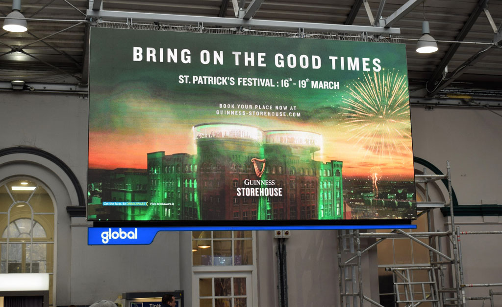 Meanwhile, the Guinness Storehouse are running in tandem. Highlighting the venue as a must-visit spot across the weekend, the creative from In The Company of Huskies brandishes a similar occasional green hue overlaying their gravity bar, framed as pint two pint glasses. Also planned by Source OOH and PHD, the campaign is running across an abundant mix of classic and traditional formats including T-Sides, Transvisions, Digipanels, Digishelters, Aerpods, Skyscreens, Orbscreens, Micromedia panels, and the Green Screen at Stephen’s Green Shopping Centre.
