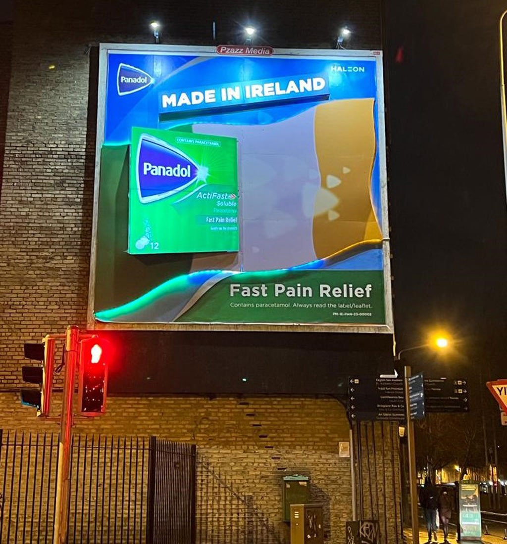 “Panadol has been made in Dungarvan for over 40 years and we are delighted again to launch our ‘Made in Ireland’ out of home campaign, coinciding with St Patrick’s Day,” notes Lucy Else, Brand Manager at Haleon, “We were thrilled with the results we received last year following our campaign, so we knew we wanted to do something even bigger in 2023. The Special Build in Usher’s Quay has surpassed our expectations and we thank PML Group for helping to bring our vision to life.”