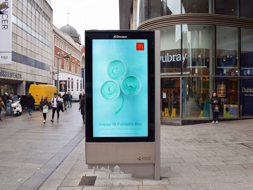 Planned by Source OOH and Zenith, McDonald’s Shamrock Shake is ‘Back for the Craic’ on Outdoor panels this cycle running across Digipanels and Digishelters.