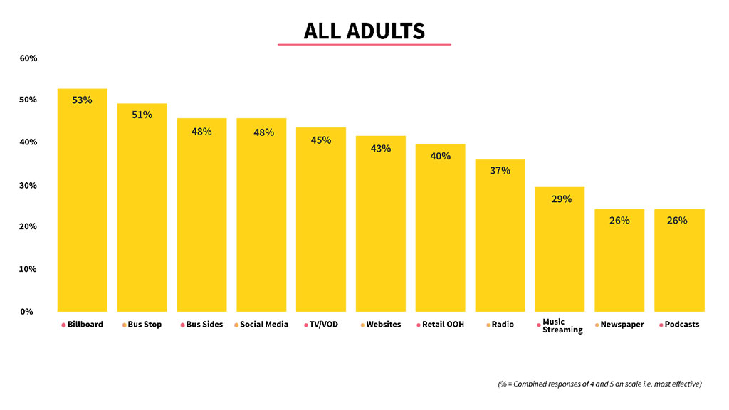In our Media Impact Study OOH was rated top for prompting spending on key occasions vs other media, with billboards and bus stops being considered the most effective formats. For more information contact info@pmlgroup.ie.