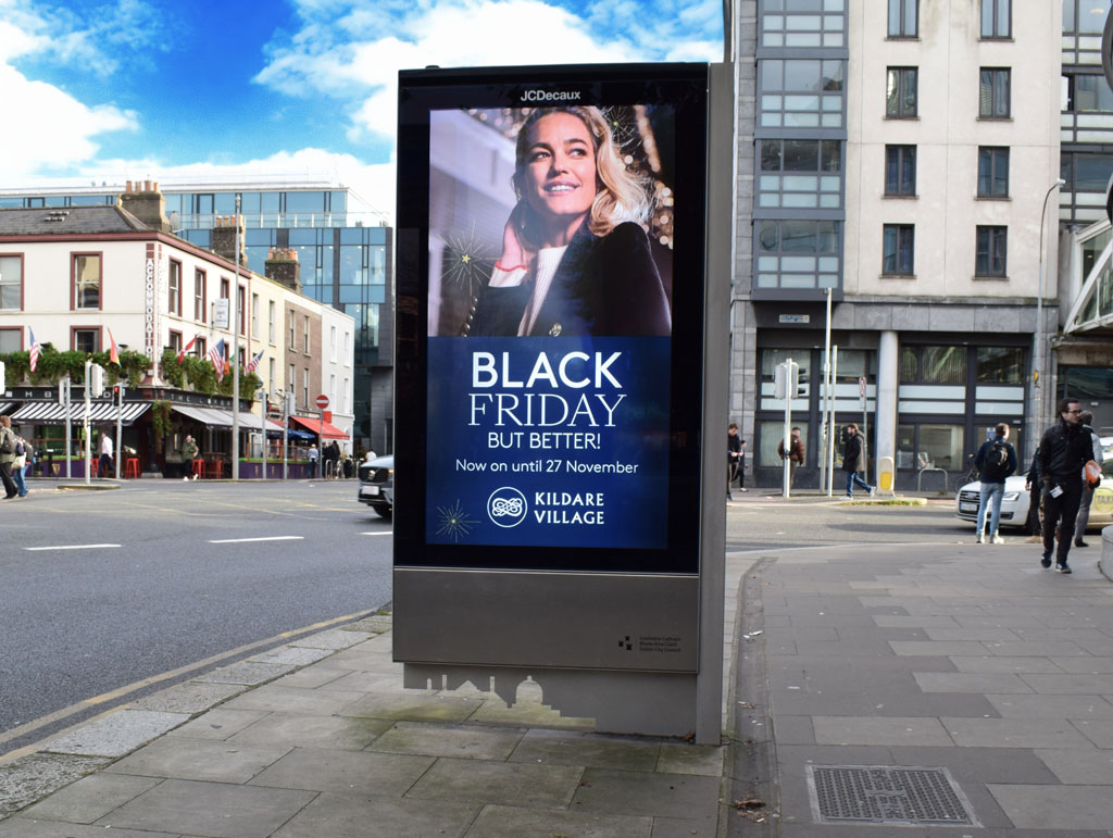 Kildare Village understand the strategic placement of OOH for retailers is paramount to maximise visibility and impact. Implemented as part of their wider ‘Christmas, But Better’ campaign, the Black Friday variety has taken a temporary residency across their large commuter and roadside formats. With ‘Black Friday, But Better!’ front and centre, onlookers are prompted while in transit and on the street to amplify the conventional Black Friday shopping experience, planned by Javelin and Source out of home.