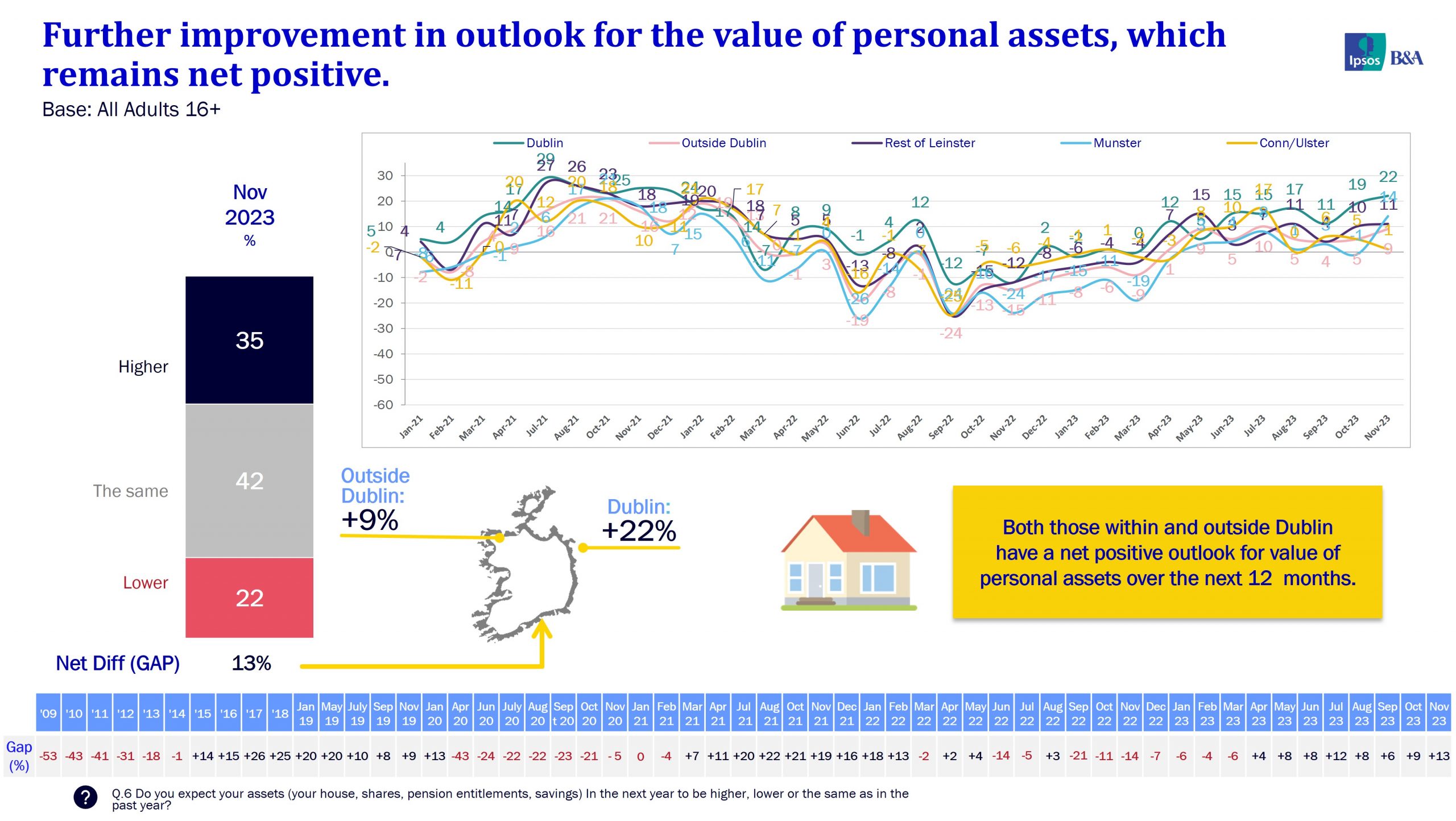 Outlook for the value of personal assets in the year ahead has improved and remains net positive.