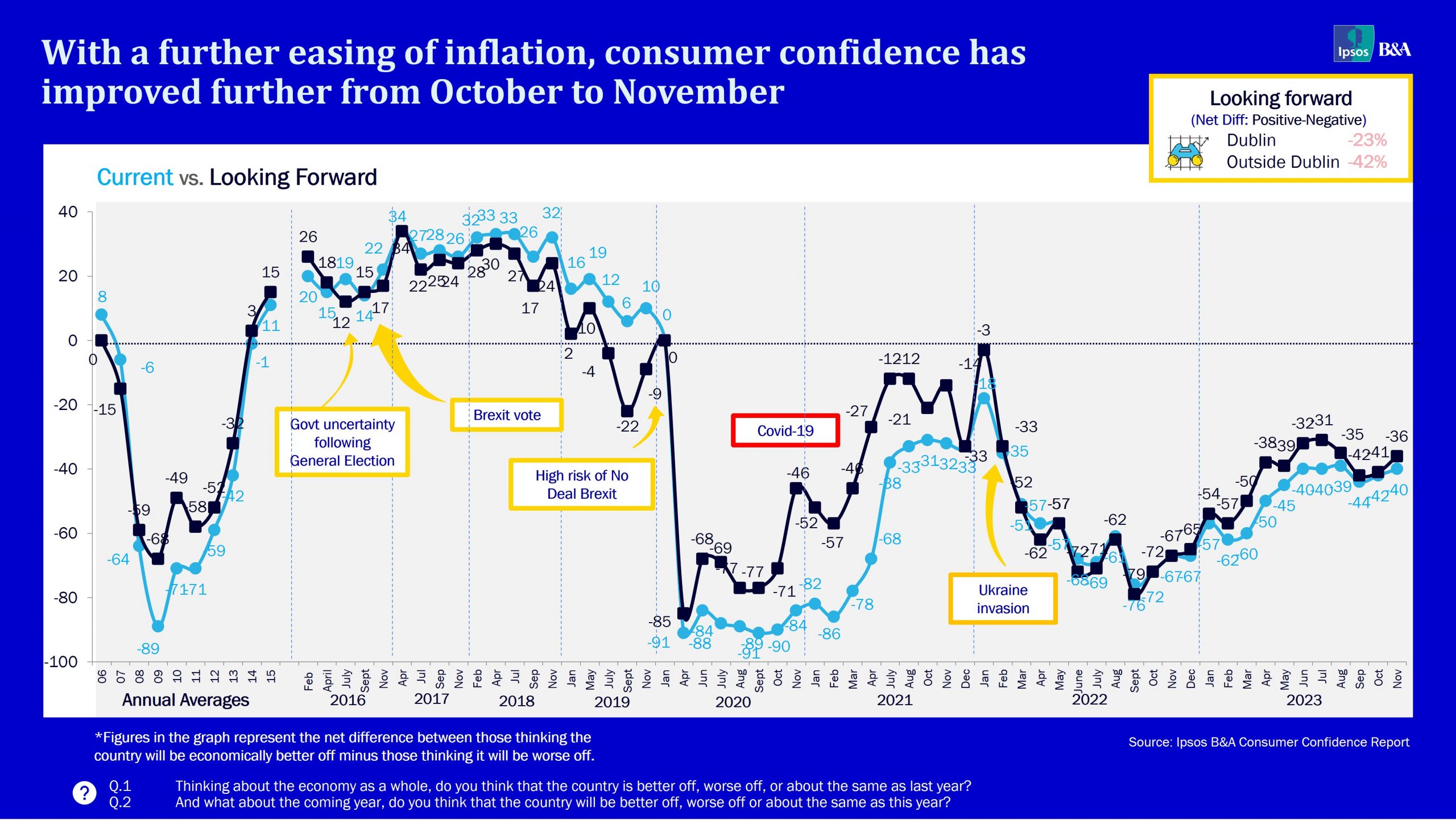 With a significant easing of inflation, consumer confidence has improved from -41 in October to