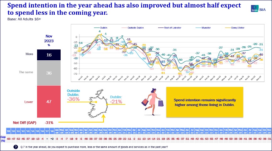 Spend intention in the year ahead also sees an improvement, but almost half (47%) expect to decrease their spend in the year ahead, with just 16% expecting to increase their consumer spend.