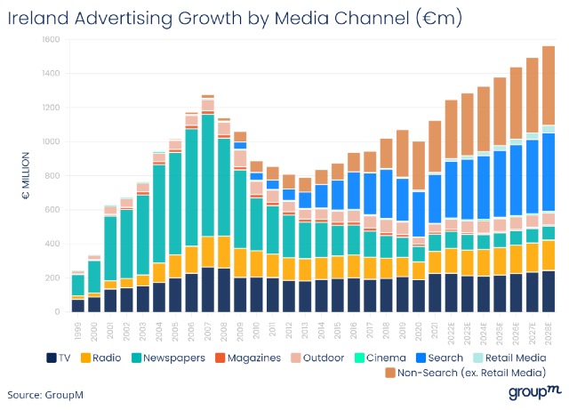 This follows a 3.1% increase on advertising spend in 2023 which GroupM estimates closed at around €1.28bn for the year.