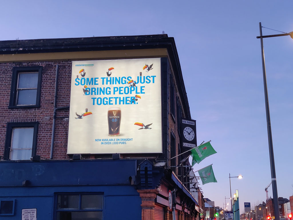 “What better way to celebrate Guinness 0.0 being available on draught in over 1,000 pubs in Ireland than by using the iconic Toucan to invite consumers to get together with Guinness 0.0,” notes Alan McAleenan, Marketing Director for Guinness in Ireland, “I hope you agree the new “My Goodness! My Guinness 0.0” campaign looks fantastic- it’s unmistakably Guinness and unmistakably non-alc.”