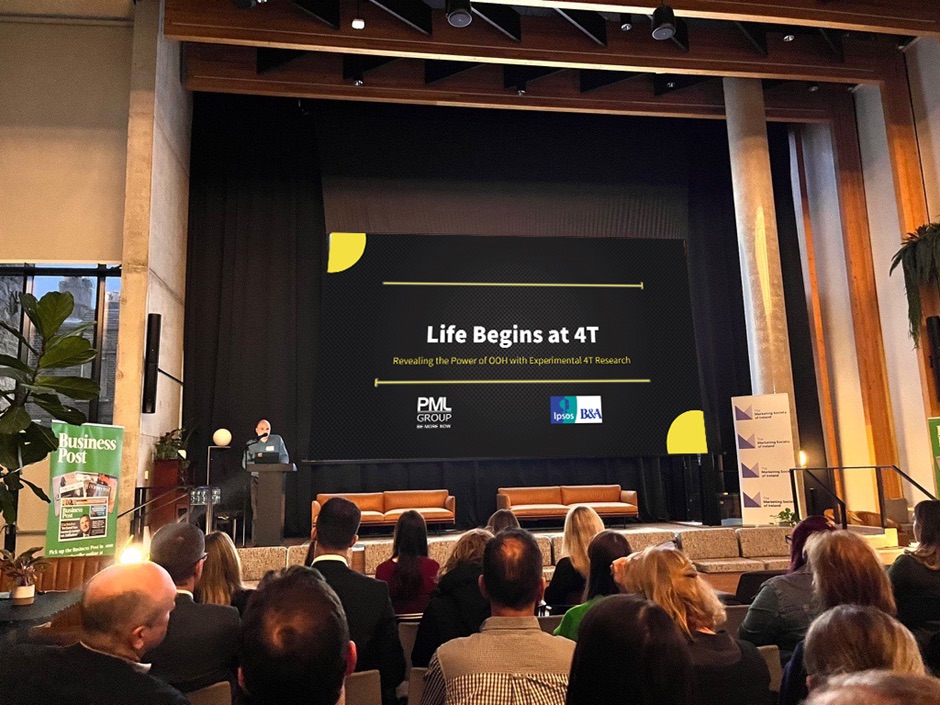 We were delighted to showcase our winning research excellence award case study at this week’s Market Society winner’s event, hosted by Core. Our marketing director, Colum Harmon, presented the findings from the research initiative alongside Damian Loscher from Ipsos B&A. The ‘4T’ project won gold in the Media category at the Research Excellence Awards in December.