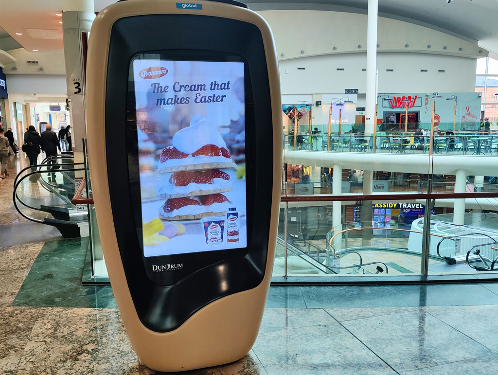 Tirlán’s Avonmore Fresh Cream ran across a mix of classic and digital formats including Mall Digital, Digital Kiosks, SuperValu Screens, Purchase Points, Baskets & Pop Ads. Planned by Carat and PML, with creative from Goosebump, the enticing creative displays an inviting home dessert creation. Incorporating seasonal chocolate flanked by fruit, encased in dollops of the fresh cream, ‘The Cream that makes Easter’ is a tagline we’re inclined to believe.