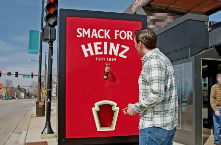 The “Smack for Heinz,” activation cleverly counters eateries that forgo the iconic condiment, placing special six sheet billboards equipped with ketchup packet dispensers right where it’s needed.
