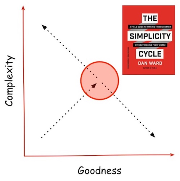 Dan Ward outlines the journey to simplicity in his book “The Simplicity Cycle: Simplicity and Complexity in Design”. It starts with an uncomplicated, simplistic view. Then, as you learn more, things get complicated. With so many things to think about, it’s hard to know what matters from what doesn’t. As you gain knowledge, you eventually compress your learnings into their simple essence. They become simple, but not simplistic. And you improve. As Bruce Lee said: “Before I learned the art, a punch was just a punch, and a kick, just a kick. After I learned the art, a punch was no longer a punch, a kick, no longer a kick. Now that I understand the art, a punch is just a punch and a kick is just a kick.” But there’s a common misunderstanding that more complexity, brings more quality. It doesn’t. It brings less. Over time, the journey towards great, is about complexity reduction. Or as Antoine de Saint-Exupéry said, “perfection is finally attained not when there is no longer anything to add, but when there is no longer anything to take away”.
