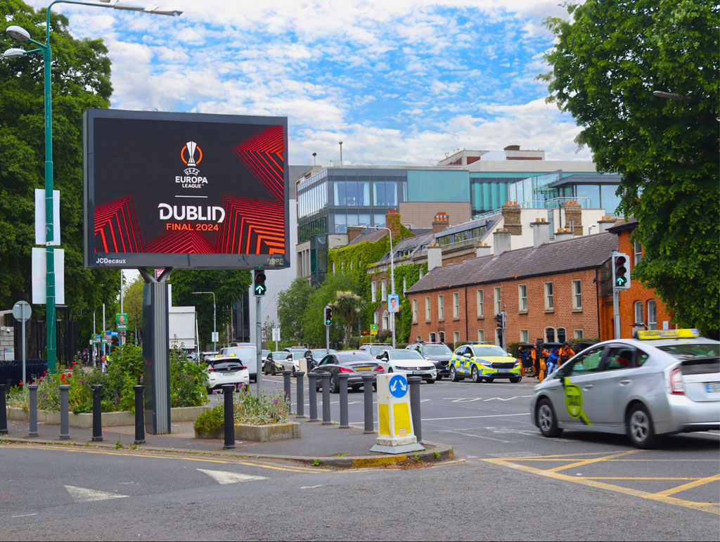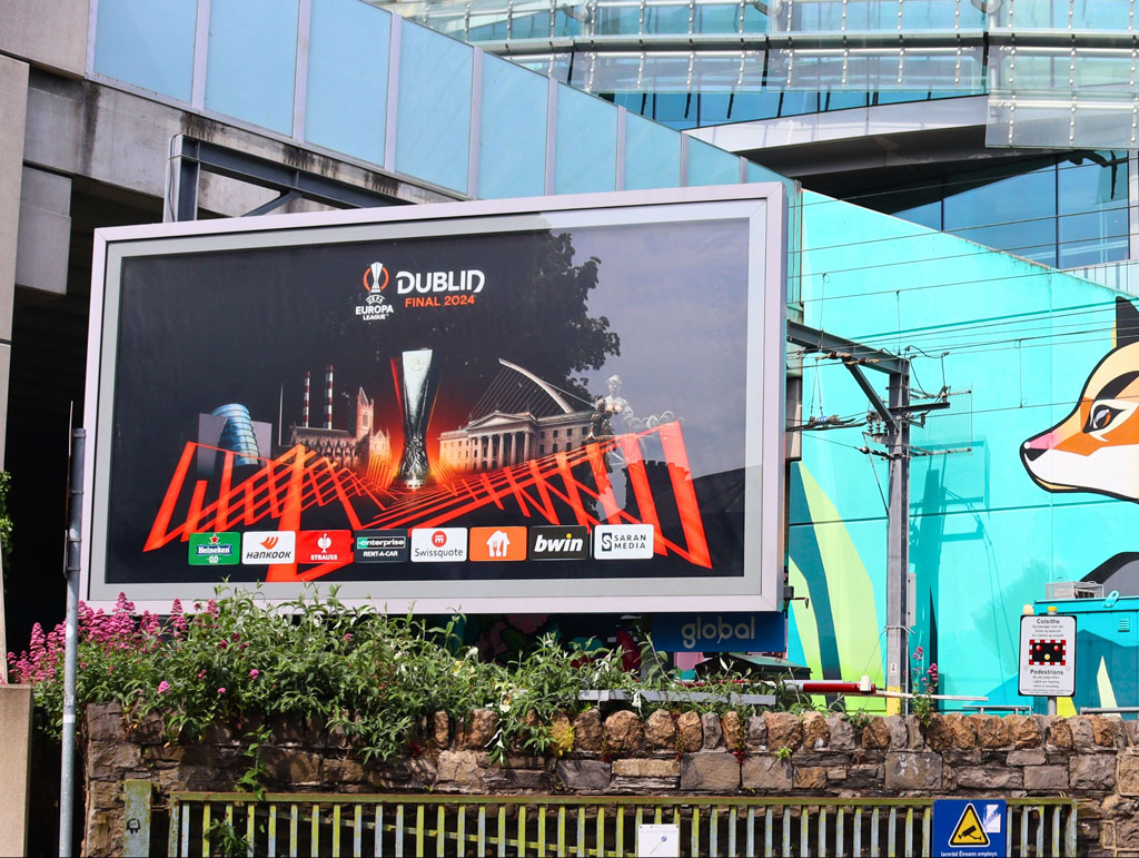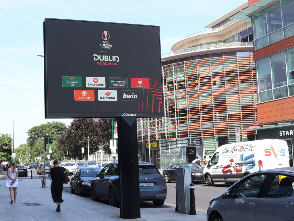 “PML Group was delighted to be entrusted by UEFA and Dublin City Council to activate OOH for such a prestigious and important event for the country,” says Darren Greene, director of PML, “Outdoors is where we live, and occasions such as the Europa League final gives us the ideal platform to showcase the unique power of our offering and that of the OOH channel.”