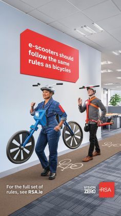 Forsman & Bodenfors Dublin (formerly In the Company of Huskies) has launched a new campaign for the Road Safety Authority (RSA) to inform all road users about the legalisation covering electric scooters in Ireland.