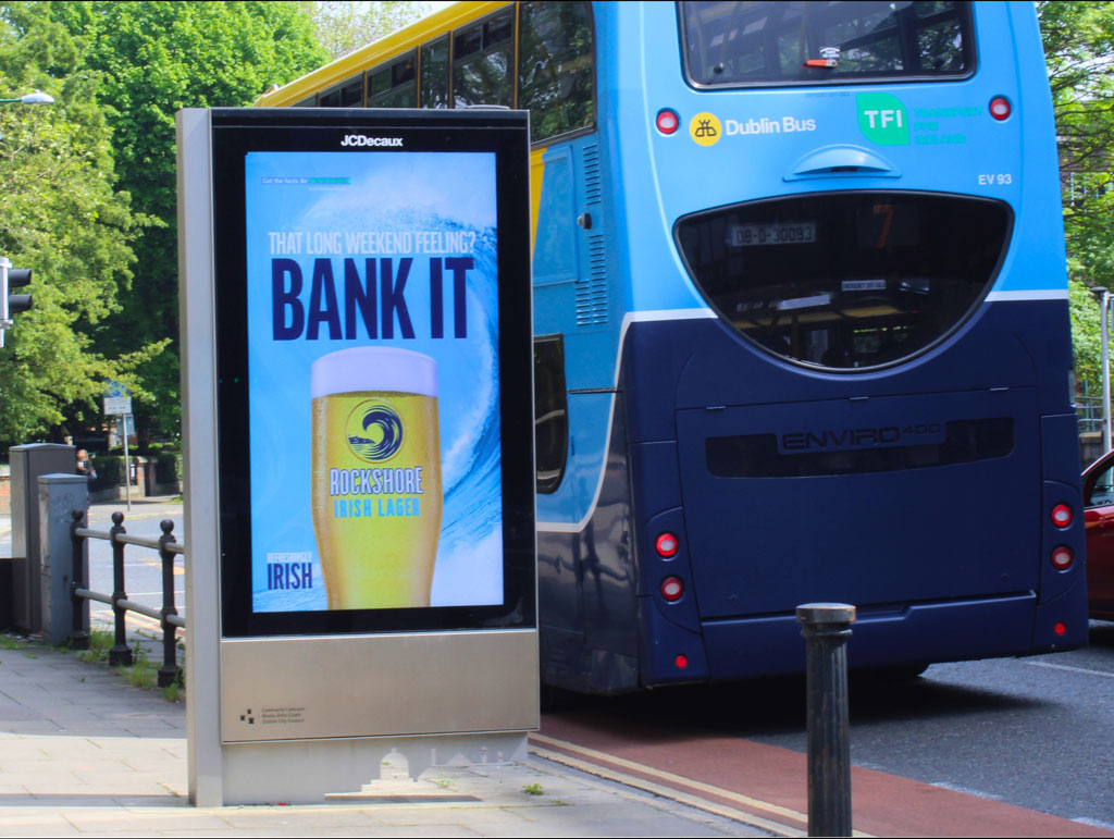 Meanwhile, main brand Rockshore is once again running their ‘Bank Holiday Feeling’ campaign. The beer brand sets out to be a part of consumers’ weekend festivities by helping consumers ‘bank’ that weekend feeling. The OOH campaign is running across a mix of classic and digital OOH including retail and roadside digital 6s, 48 sheets and the Green Screen.