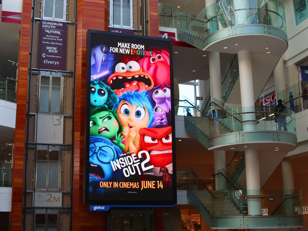 “Dundrum Town Centre was such an obvious and natural fit for the movie given its popularity with families, more so as we enter the Summer and School Holidays,” continues Carolan, “In addition, the unique formats really help hero the characters (emotions), new and old, and along with the humorous contextual copy enabled us to deliver a beautiful and impactful installation”.