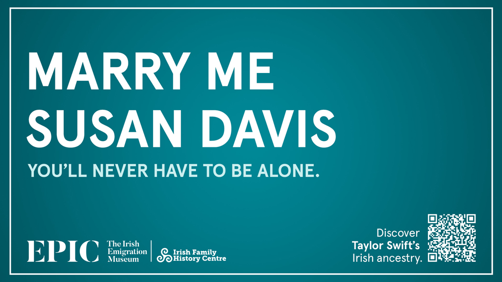 With a lot of love flowing in the direction of Taylor Swift this week, The Public House has created a new campaign for Epic The Irish Emigration Museum to tell a love story that dates all the way back to 1836 when the singer’s ancestors moved to the USA from Ireland.