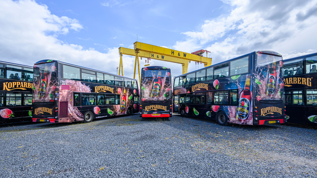 Launched at the foot of Belfast’s iconic Harland & Wolff cranes, the five Kopparberg wrapped buses will be in operation throughout Belfast.