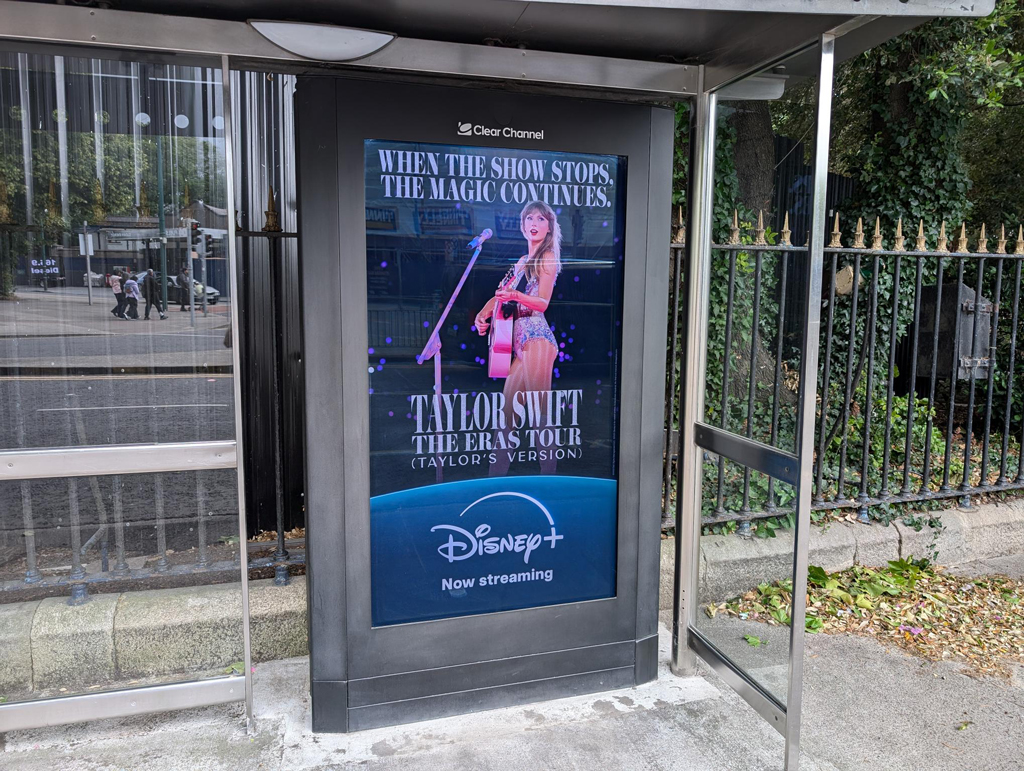 ‘When the show stops, the magic continues’ – a consoling message for Swifties who’ll be going through the post-concert blues after the weekend has ended. Disney+ is the only place fans will find ‘The Eras Tour (Taylor’s Version’) following its spell at the box office last year. Planned by Zenith and Source out of home, the campaign is availing of added context this week across large format commuter/roadside digital and mall environments. Digivans will also display animated copy in proximity to the stadium over the course of the weekend as the concerts get underway.