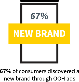 The study shows that OOH plays a significant role in brand discovery, with 67% of consumers noting as having discovered new brands through OOH ads. This effectiveness is particularly pronounced among 16-24-year-olds and 45-54-year-olds, with 75% and 73% respectively encountering new brands via OOH.